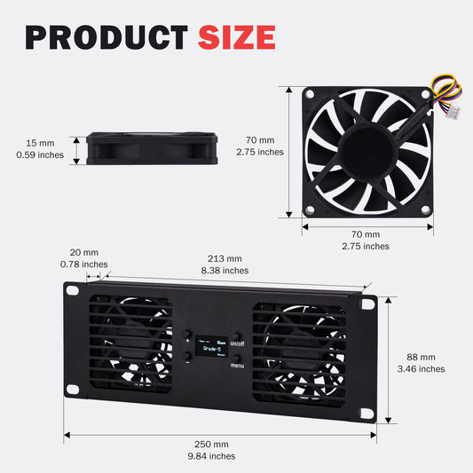 DeskPi RackMate Accessories 10-Inch 2U Dual Cooling Fan Panel