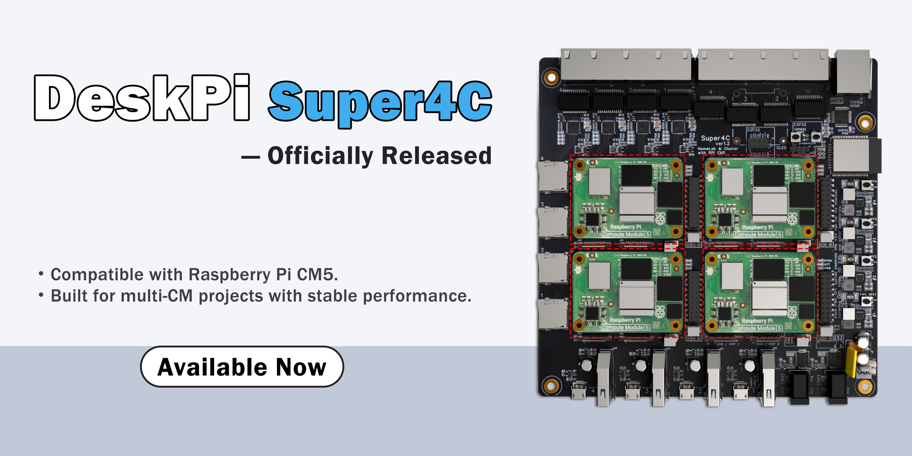 Pre-sale DeskPi Super4C Raspberry Pi CM5 Cluster Mini-ITX Board, ESP32-WROOM-32E-N4 Module, Supports 2.4GHz Wi-Fi + Bluetooth, Power Supply Included