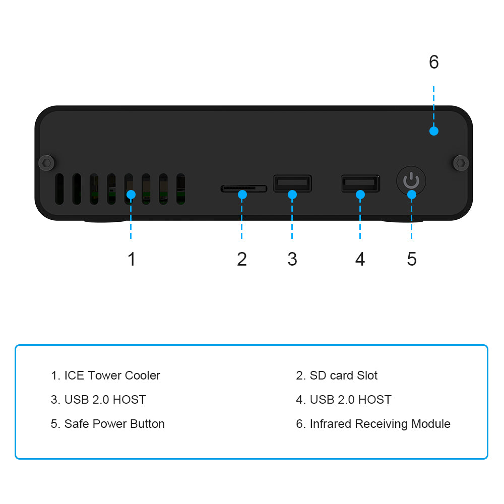 Type C power Port extends two front USB ports for USB devices like USB flash drive, gamepads, keyboard and mouse.