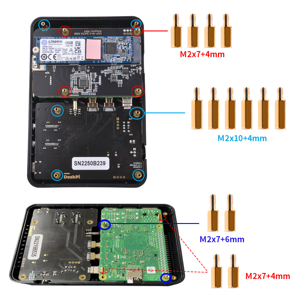 - 6 x M2x10+4mm Copper pillar (For fixing DeskPi Lite daughter board)