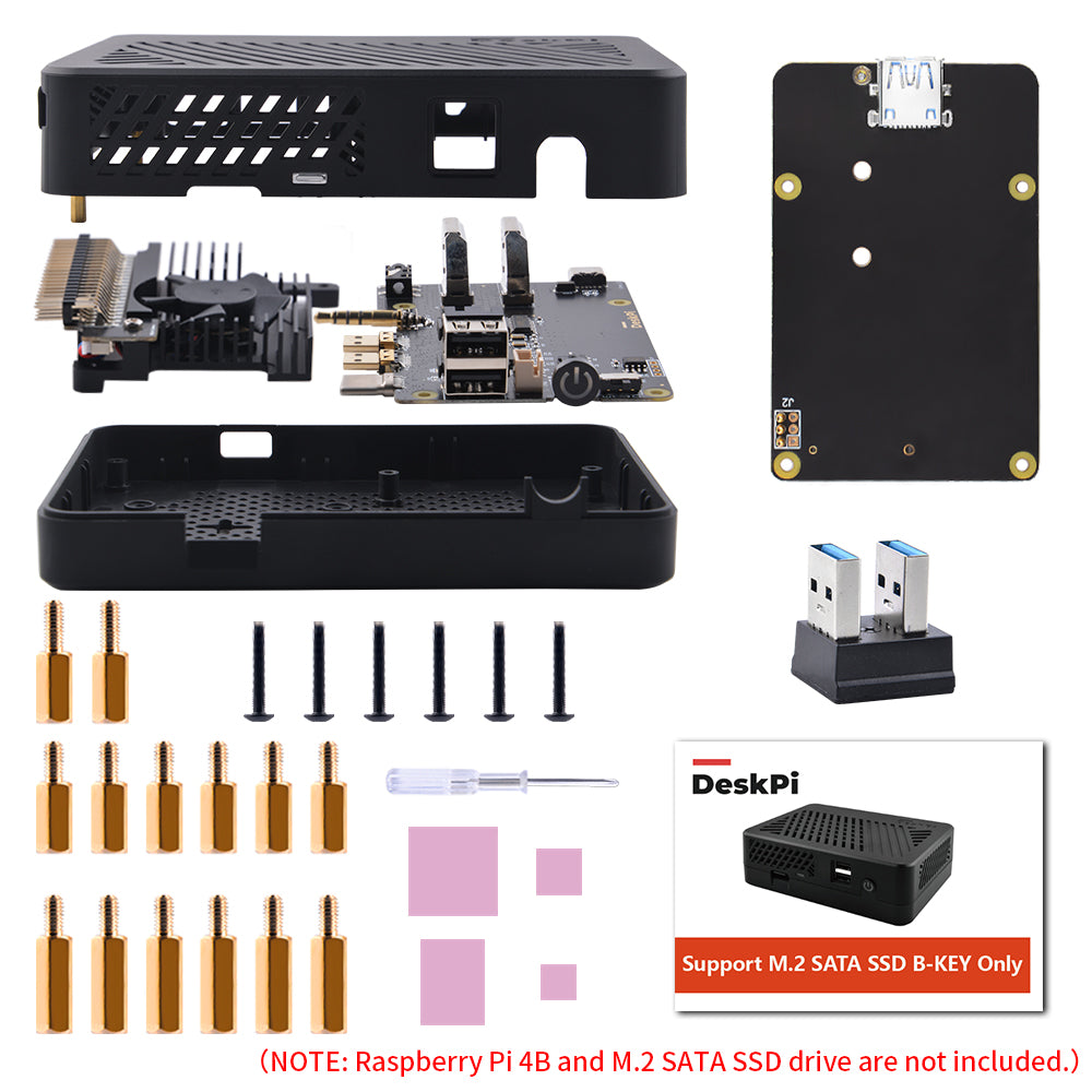 NOTE: Raspberry Pi 4B and M.2 SATA SSD drive are not included.