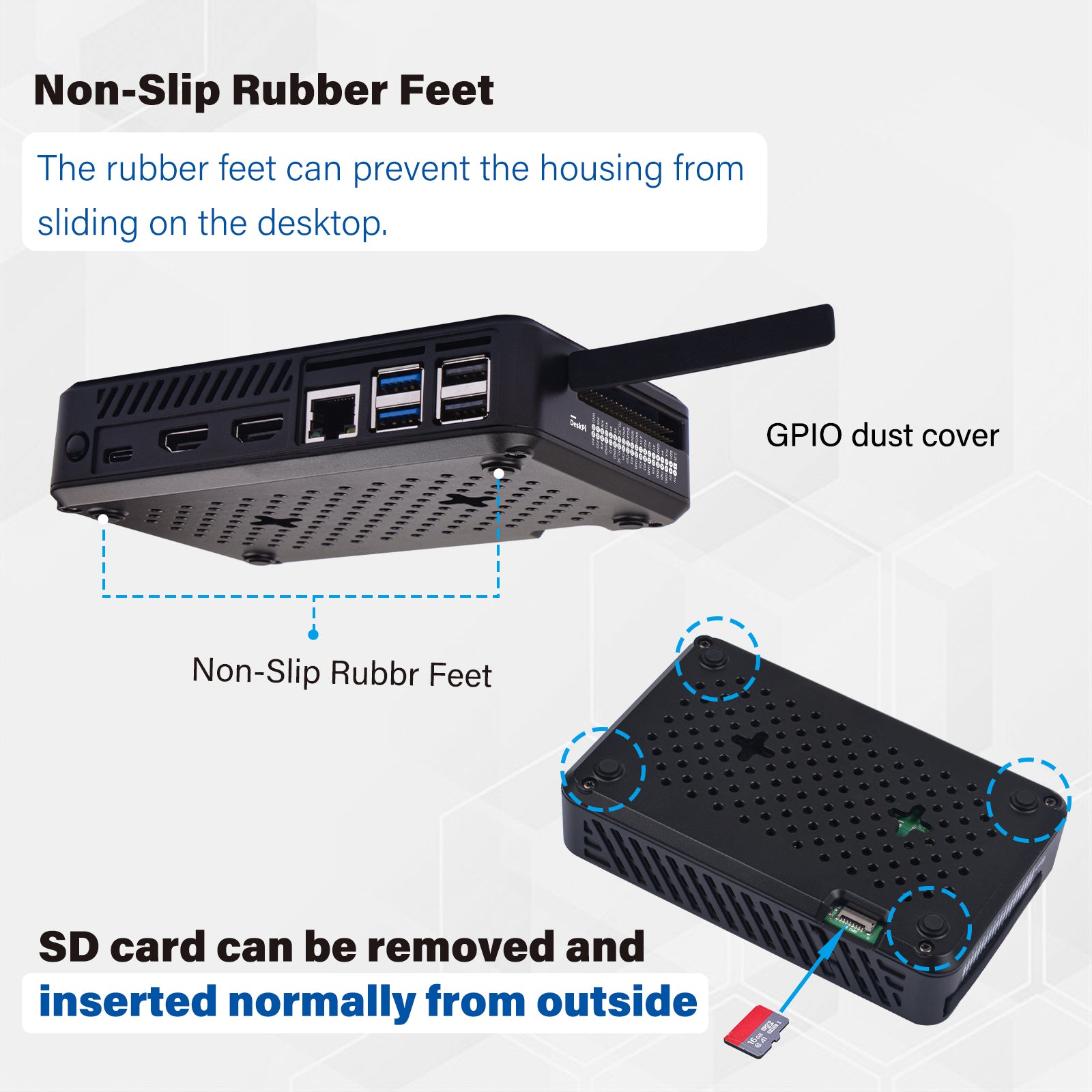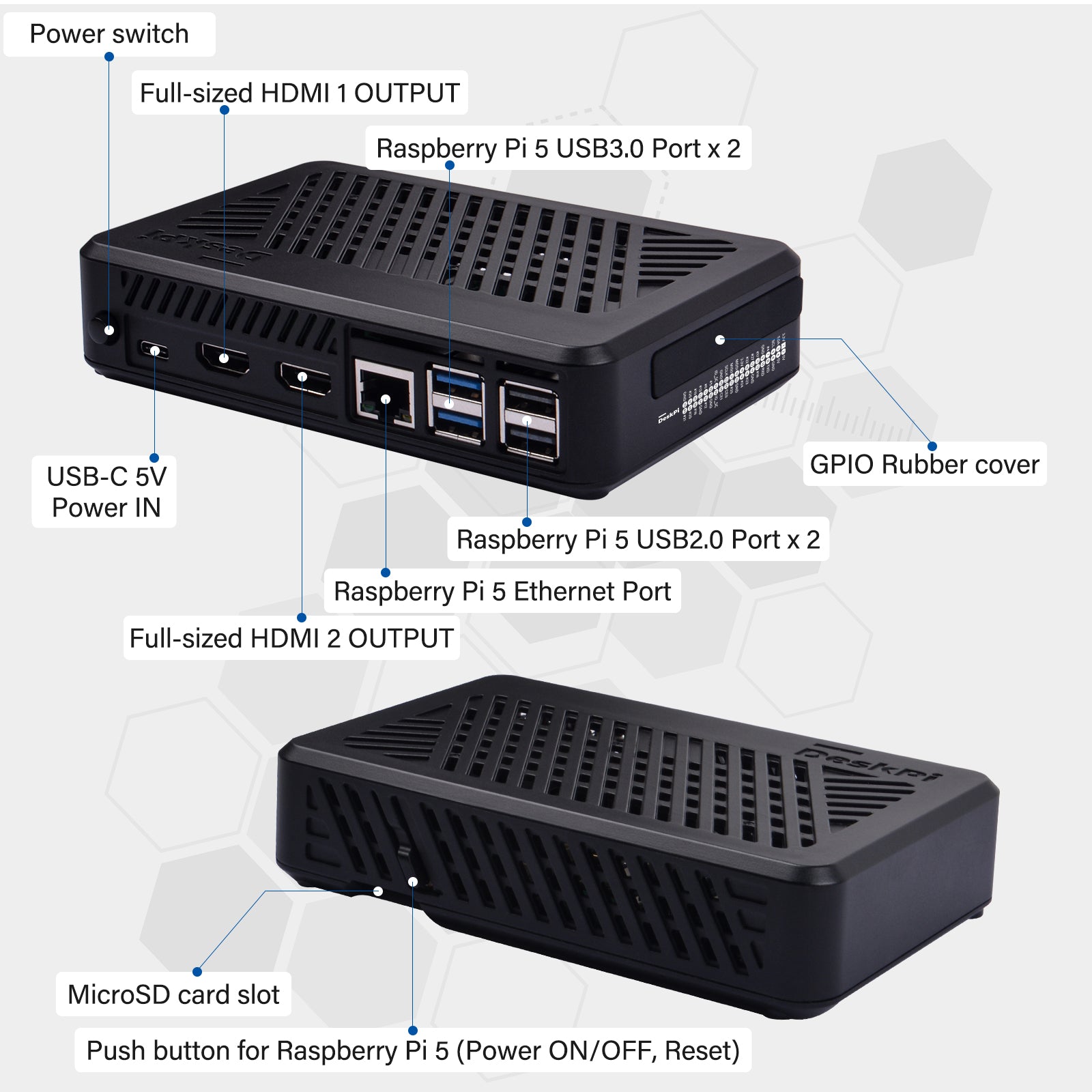 - Power Management: The case comes with a power switch button for easy on/off control and a reset push button for the Raspberry Pi 5.