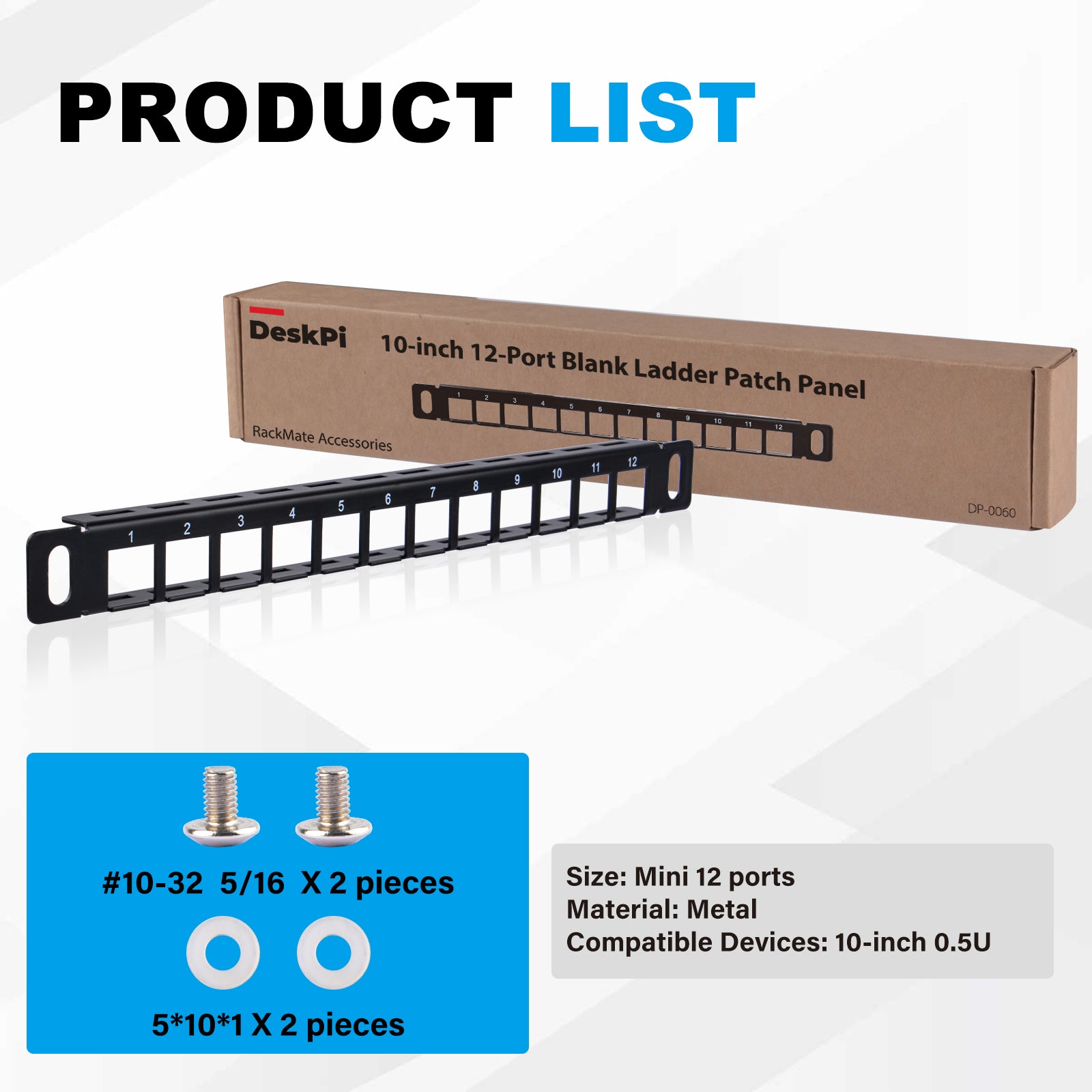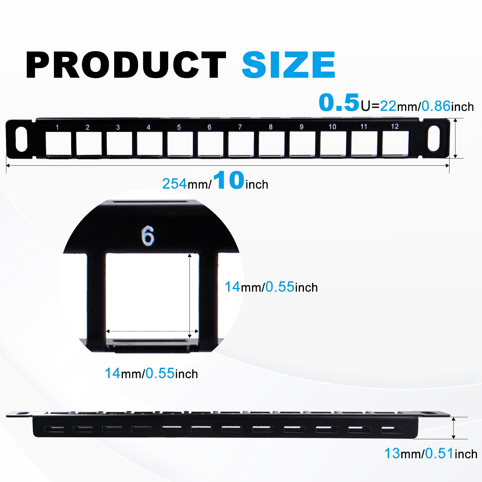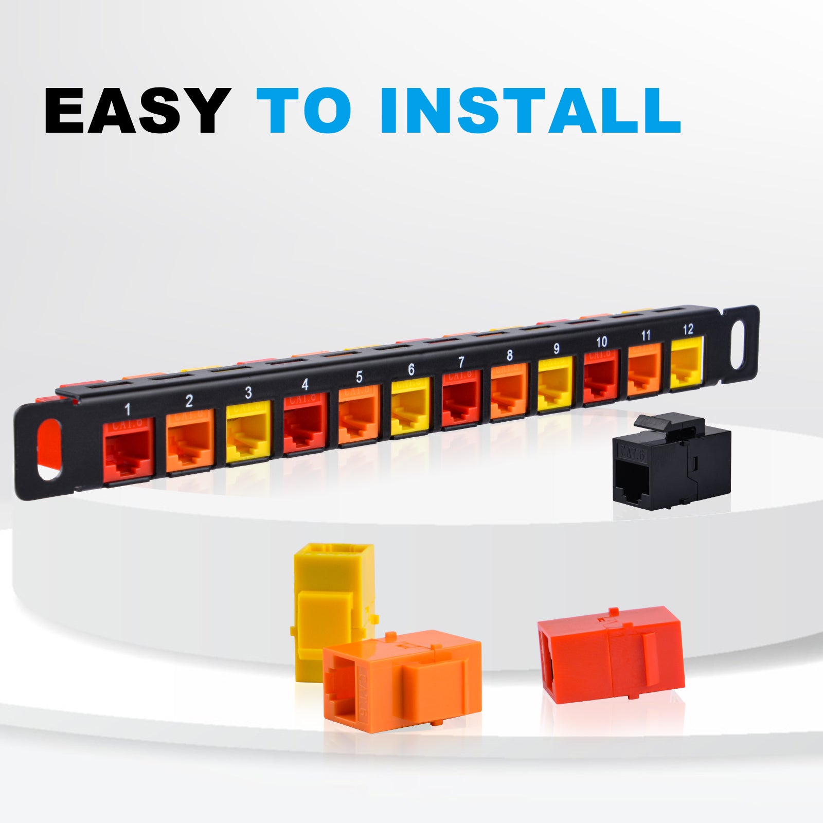 - 12-port pass-through patch panel for easy cable connection without drilling holes.