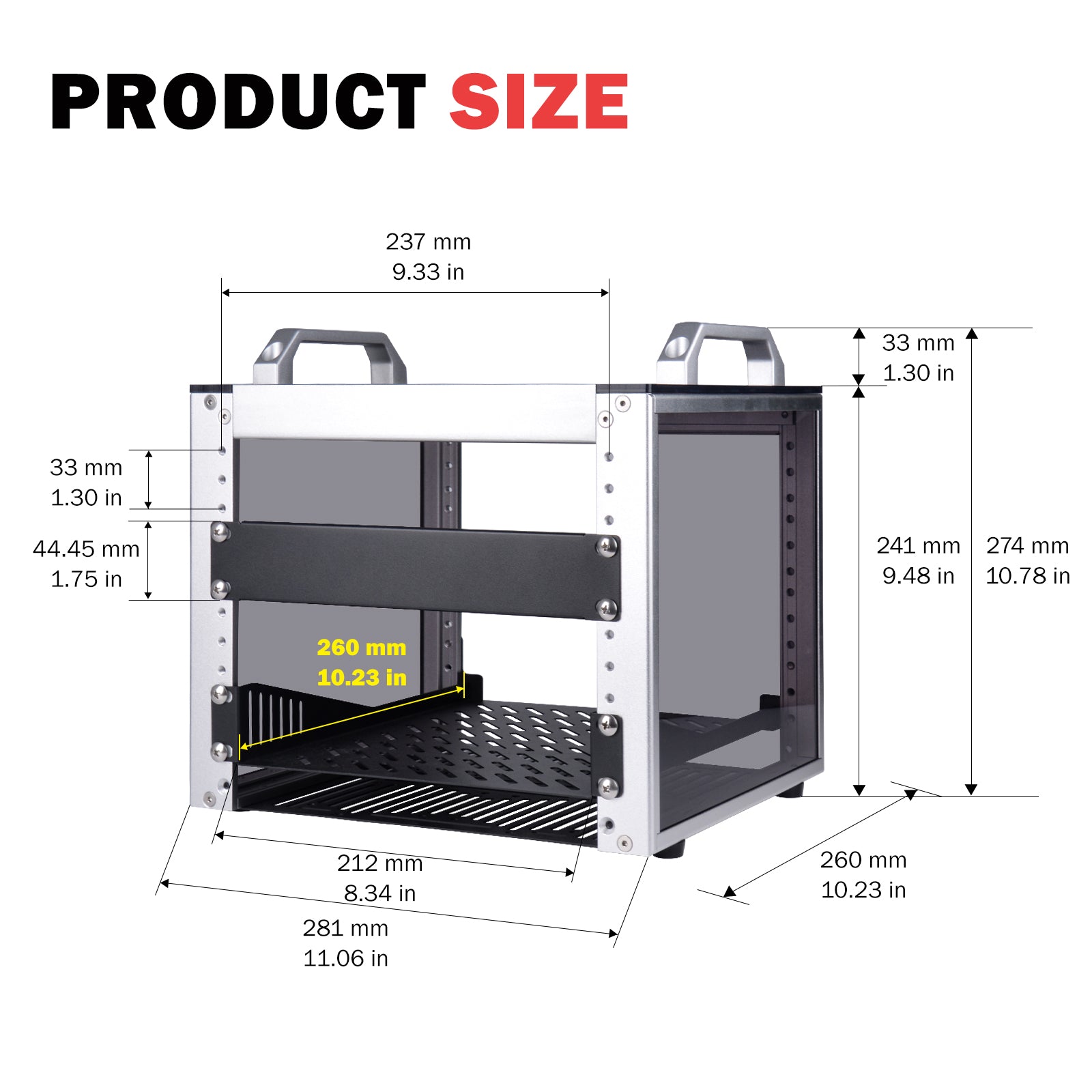 - 10-inch width: The cabinet has a width of 10 inches, which is a relatively small size that saves space while accommodating sufficient equipment. The T0 Plus is particularly well-suited for NAS devices with a depth of 260mm.